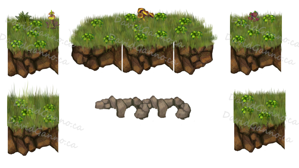 seamless platform assets. The grass was painted by me in Photoshop.